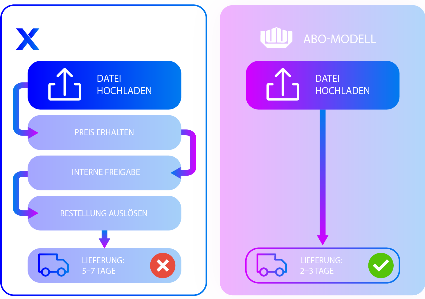 Mit unserem Monats-Abo sparst du dir teure Einzelaufträge und Investitionen in spezialisierte Maschinen.